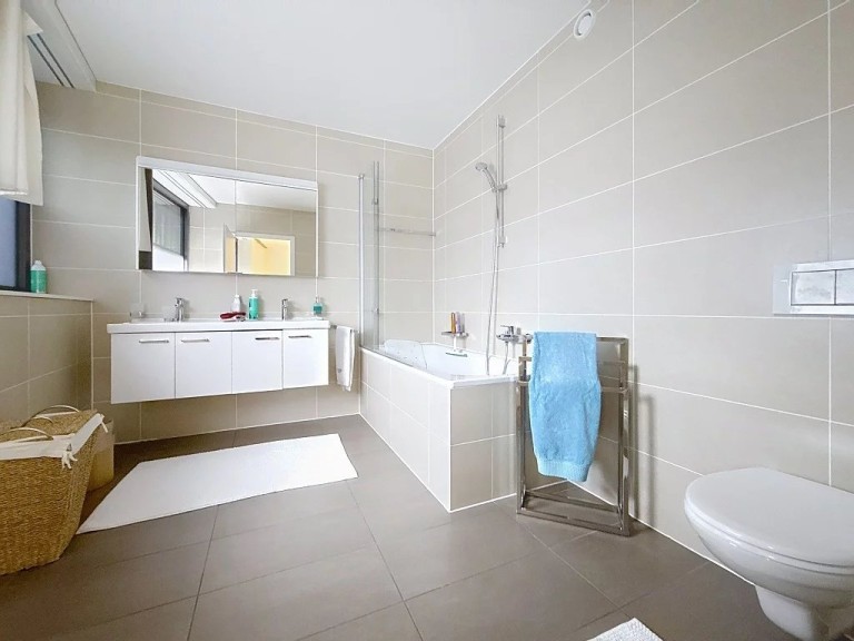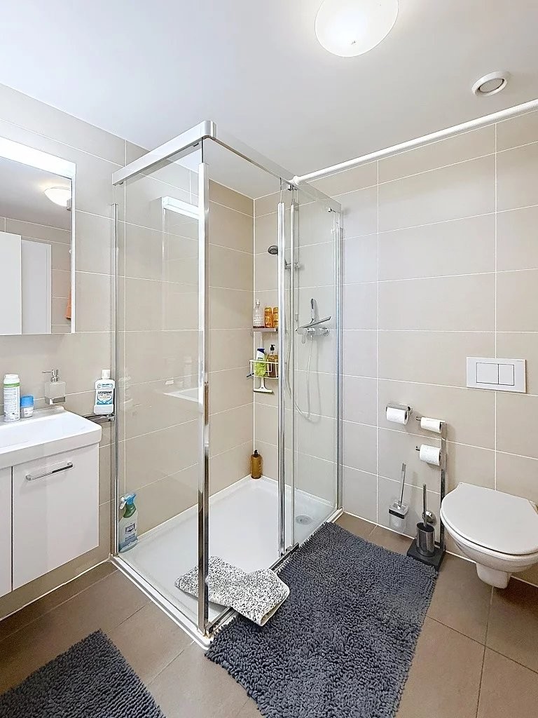 This apartment is ideally located, 10 minutes from the town center and within easy reach of shops and public transport. Very bright, it comprises an entrance hall with cupboard, living/dining room with lake view, modern fully-equipped kitchen opening onto the living room, 2 bedrooms each with en-suite shower room and bathroom, small laundry room. Basement cellar