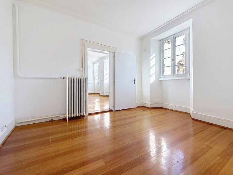 One of the bedrooms is adjoining the living room, a configuration typical of period apartments, which is an integral part of the 3.5-room apartment and constitutes the second bedroom of the dwelling.