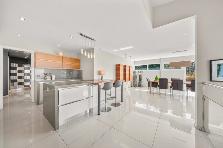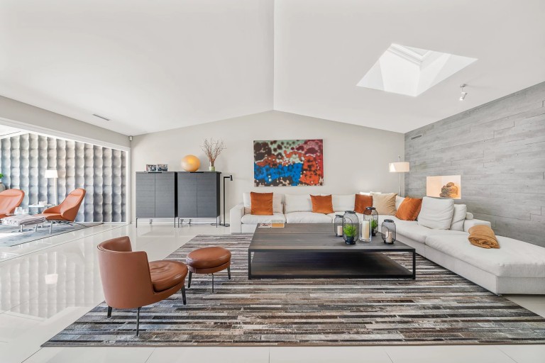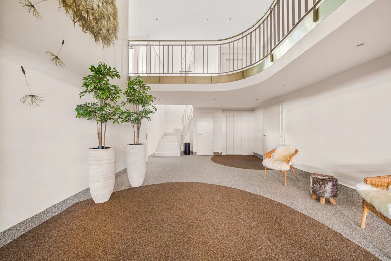 The apartment benefits from four indoor parking spaces and a private garage (in addition), and two 12.5-square-meter cellars, providing generous storage space. A bright and elegant entry hall leads to the lift from the garage.