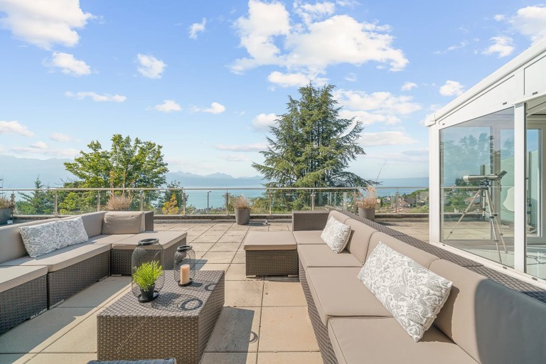 Discover this duplex penthouse apartment, located in a prestigious residence composed of two apartments. This exceptional property, spread over two floors, offers breathtaking views of Lake Geneva, blending modernity and elegance in an idyllic setting.