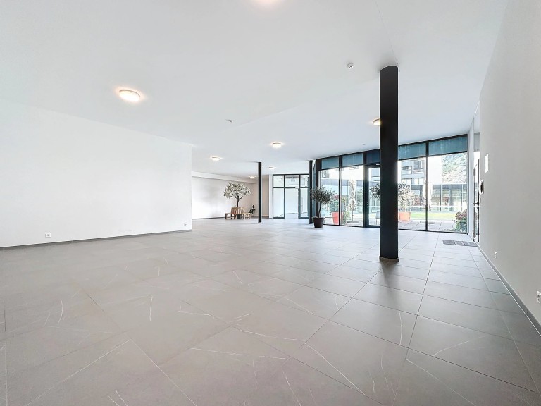 The spaces benefit from a privileged location, bordering the main road, with public parking in the basement and a bus stop directly in front of the center.