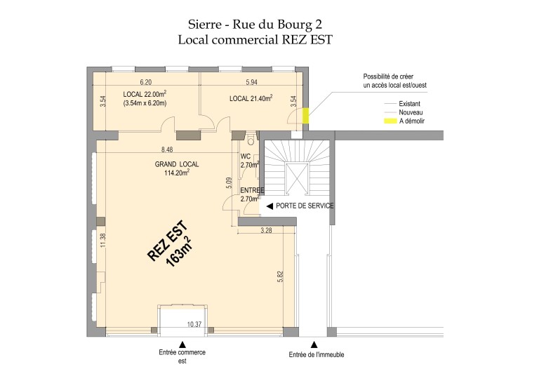 Located at number 2 on the busy Rue du Bourg, this 163 m² retail space offers excellent visibility and is a rare opportunity to set up your business right in the center of Sierre.