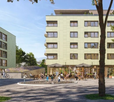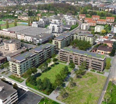 This recent project, halfway between Lausanne and Geneva, benefits from a dynamic and accessible environment, with an underground parking lot with 288 spaces, 187 of which are public, and excellent public transport links (train station 700 m away, bus stops less than 50 m away).