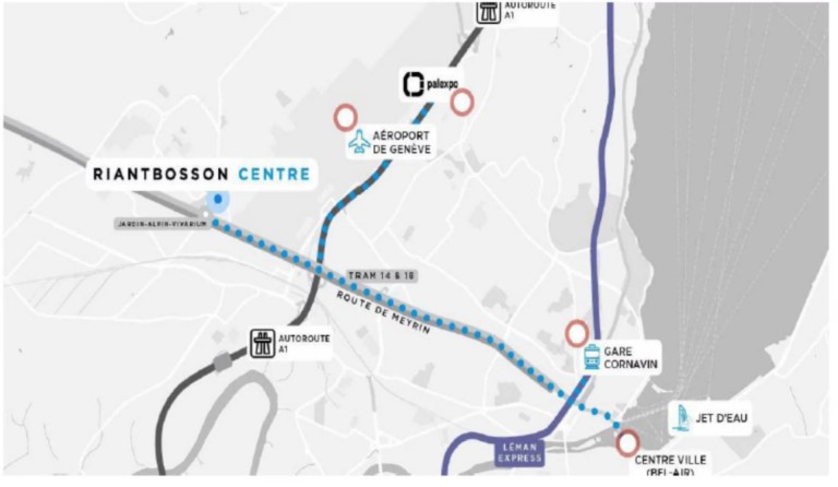 Riantbosson is ideally located, close to Geneva Cointrin international airport and directly connected to the city center by streetcar 14 and 18.