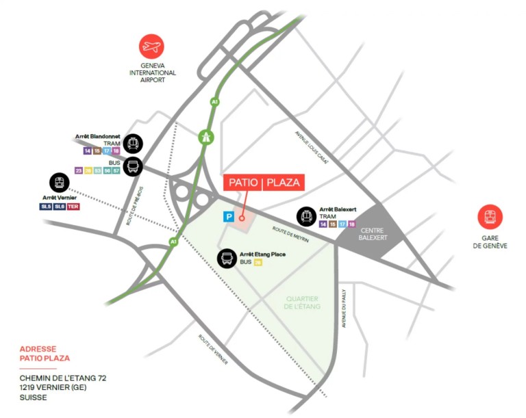 With its proximity to Geneva International Airport and excellent public transport links, the “Patio Plaza” business park guarantees a prime location.