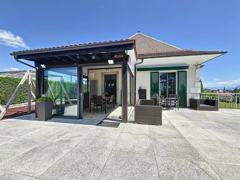 Built in 1960 and completely renovated in 2017, this villa is ideally located on a beautiful, quiet plot in the small village of Allaman, with panoramic views of Lake Geneva and Mont Blanc. Get ready for breathtaking sunrises and sunsets.