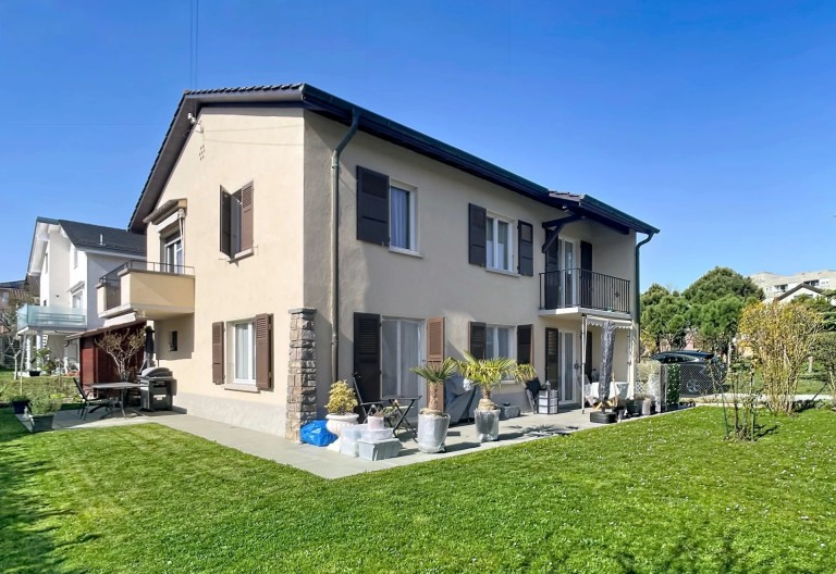 In a highly sought-after residential area on the heights of Renens, this 2-family house with approx. 130 m2 of living space enjoys an exceptional location that is rare on the market. Ideally located just a few minutes from the city center, universities (HEIG-VD, EPFL, UNIL), public transport and motorway access, it offers a peaceful, green living environment, while remaining perfectly connected to Lausanne and the surrounding area.
