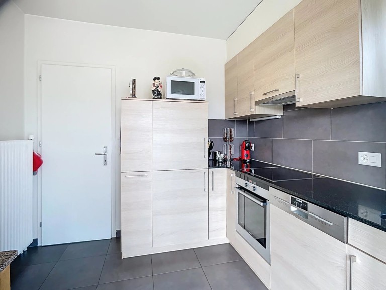 1st floor: Entrance and distribution hall with wall cupboards, shower room/WC with washing machine radiator (2023), fitted kitchen (2010) with access to a balcony, children’s bedroom, master bedroom, living room with access to a second balcony, bedroom or dining room (this room is currently open) with adjoining small room. Ceiling height is 2.6 meters. The floors are covered with period mosaic parquet.
