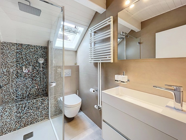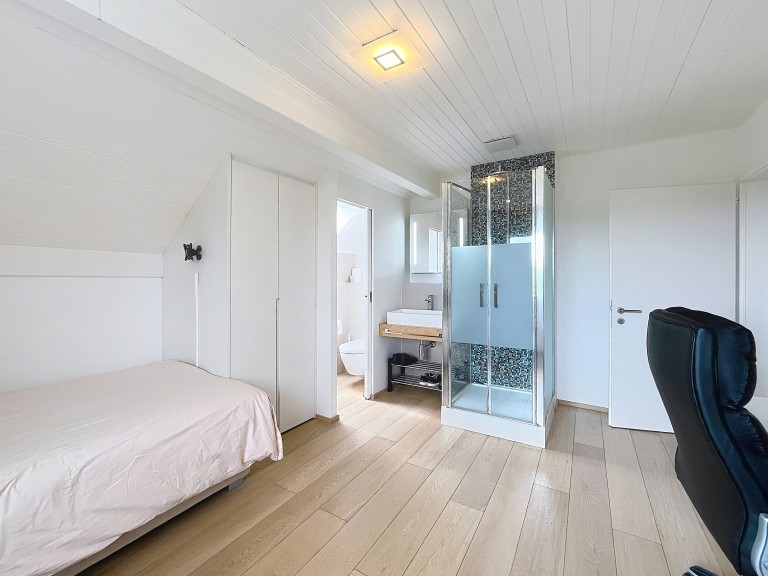 On the first floor, the sleeping area comprises 4 bedrooms, including a master suite with en-suite shower room, a bedroom with integrated shower and toilets, plus an additional shower-room for 2 bedrooms.