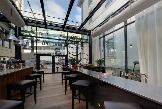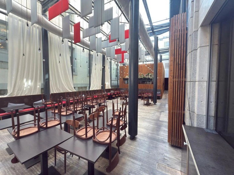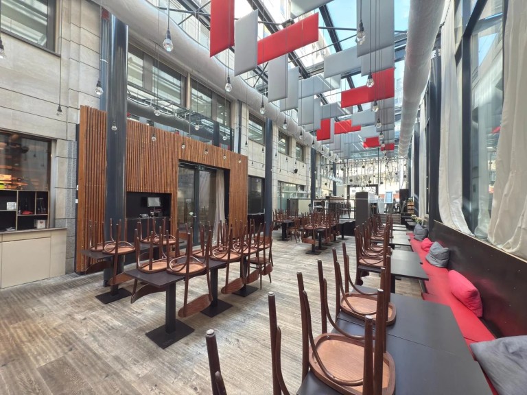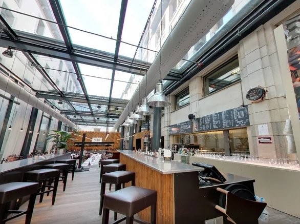 • Grande arcade lumineuse de 247 m², avec belle hauteur sous-plafond garnie par une verrière facilement aménageable pour tout type de concept culinaire (restaurant, café, take-away, etc.)