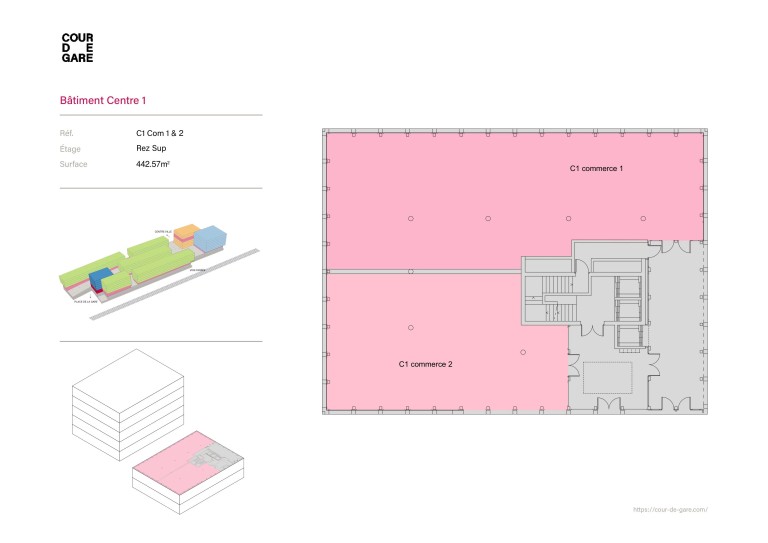 Ces surfaces totalisent 442.57 m2 mais peuvent se louer indépendamment l’une de l’autre au besoin.