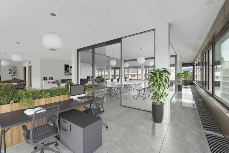 Le bâtiment fraichement rénové est positionné dans le quartier dynamique et en plein mutation des Acacias, à seulement quelques minutes de l’hyper centre.