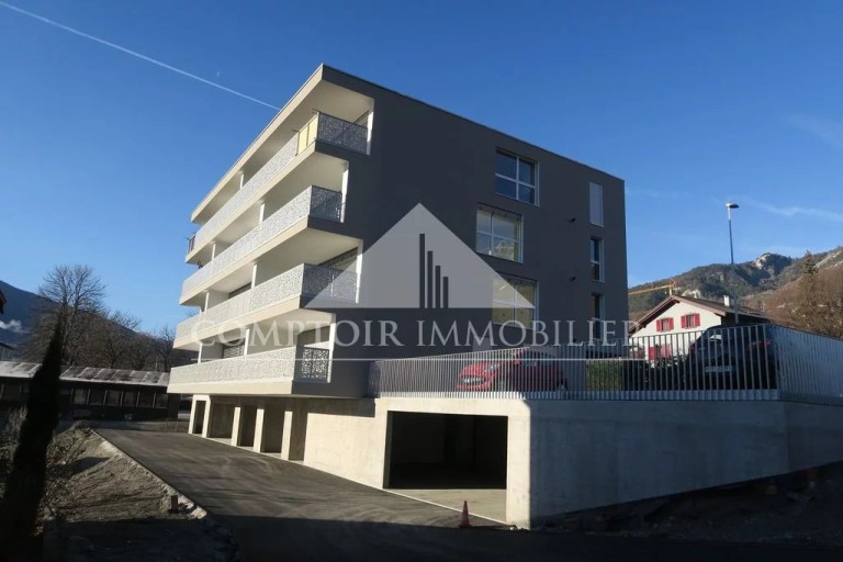 Place intérieure, dans un parking sécurisé, à la Rue St-Georges 13, au centre de Sierre.