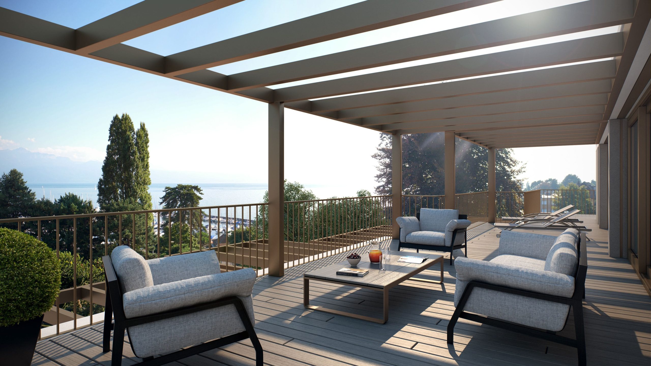 Ses vignes font partie du vignoble de Lavaux, classé au patrimoine mondial de l’Unesco. Construction d’un immeuble de 5 niveaux et un attique en toiture, 21 appartements PPE de standing, de haute performance énergétique, allant du studio au 5.5 pièces avec vue sur le lac pour certains, 20 places de parking intérieures.