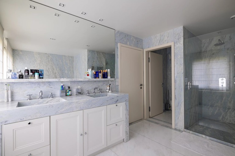 Les deux autres chambres, avec armoires intégrées, disposent également de leur propre salle de bains et balcon.
