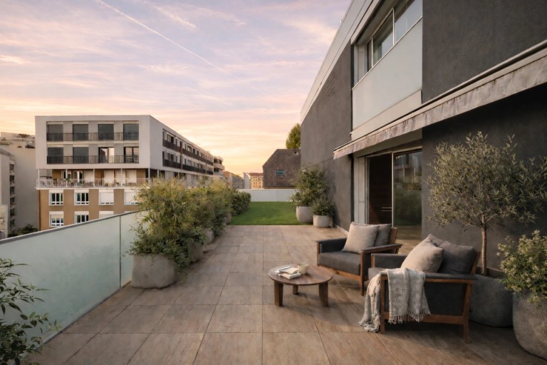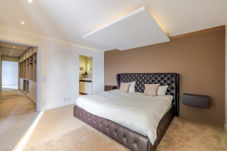 L’attique profite d’une superbe terrasse en U qui entoure toute la surface et dessert chaque pièce. Cette configuration crée une circulation naturelle entre intérieur et extérieur et apporte une belle luminosité dans chaque espace.