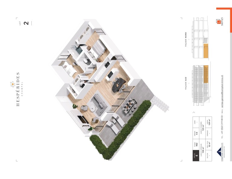 Il propose de généreux et lumineux volumes pour une surface PPE de 108 m², une terrasse de 32 m² et un jardin de 109 m².