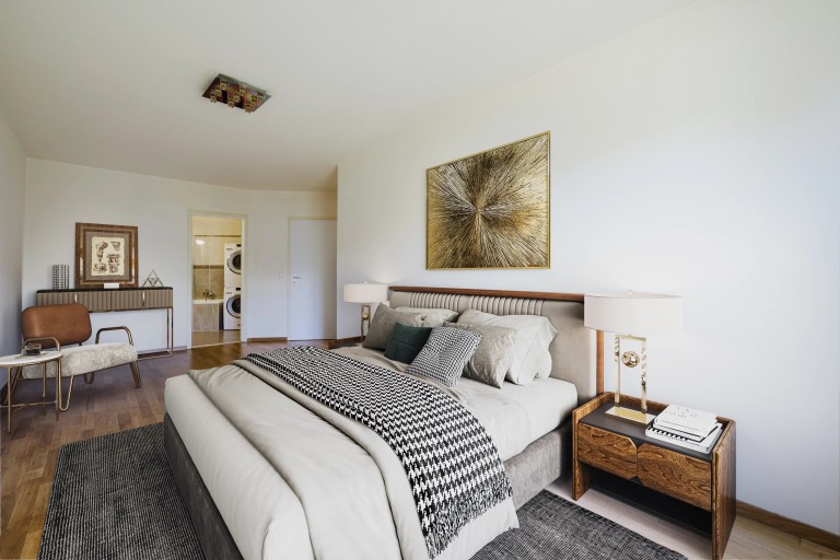 Situé au premier étage, il bénéficie d’une belle luminosité grâce à son orientation ouest, et s’ouvre sur un grand balcon de 21 m², parfait pour savourer les fins de journée en toute tranquillité.