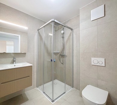 – une salle de bains avec douche et branchement pour la colonne de lavage