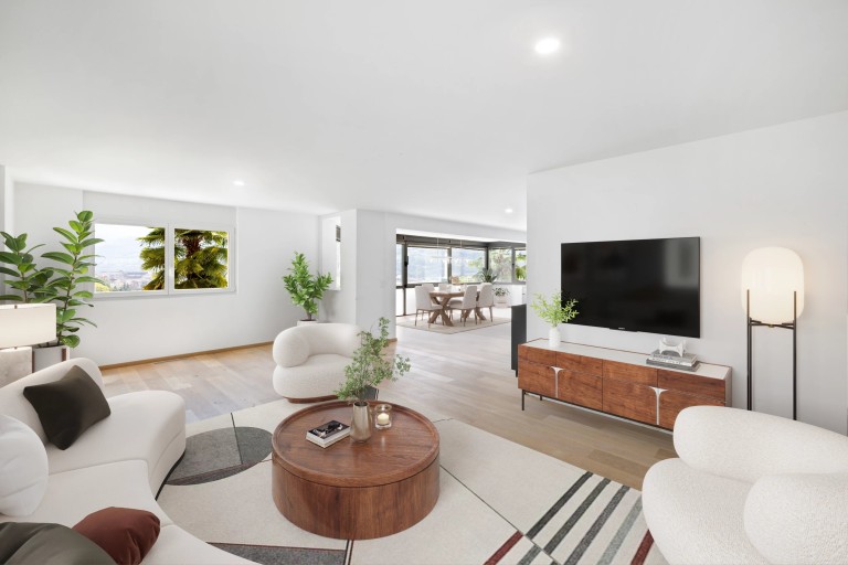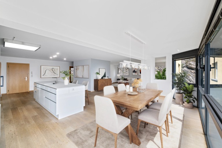 Avec une surface brute d’environ 161 m², cet appartement de 3.5 pièces séduit par ses volumes généreux et sa luminosité naturelle. Sa configuration actuelle privilégie de vastes espaces ouverts, permettant de profiter pleinement de la vue et d’un cadre de vie confortable.