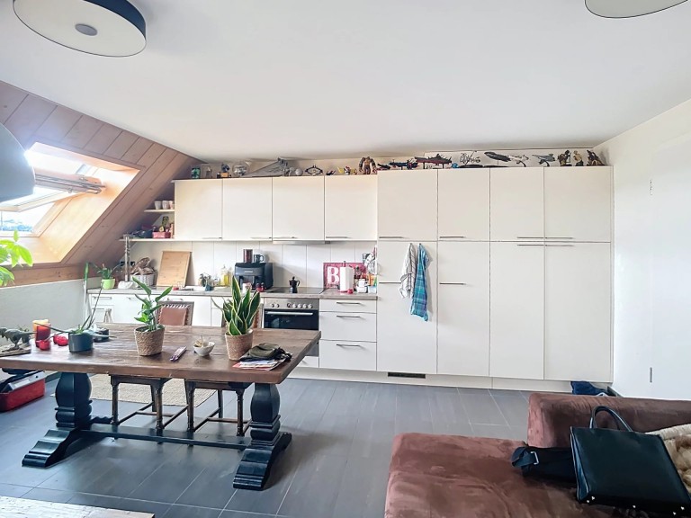 Ce charmant appartement de 2.5 pièces est situé dans les combles, il dispose de 52 m2.