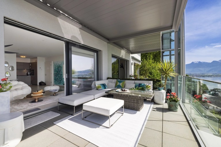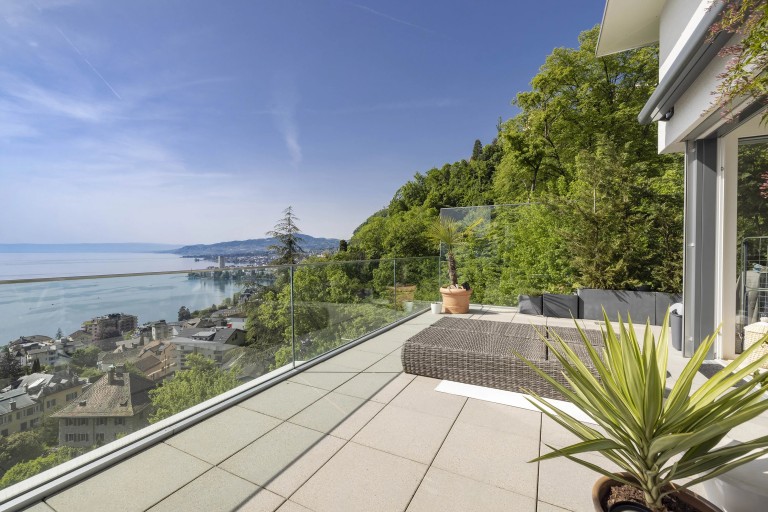 Cet appartement unique saura vous subjuguer par son panorama incomparable, offrant une vue à 180° sur tout le bassin lémanique et les montagnes, totalisant plus de 100 m2 pondérés !
