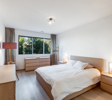 À l’étage desservi par un ascenseur, une élégante suite parentale vous attend, avec une salle de douche, un dressing et un espace rangement. Une seconde chambre de 25 m² complète ce niveau.