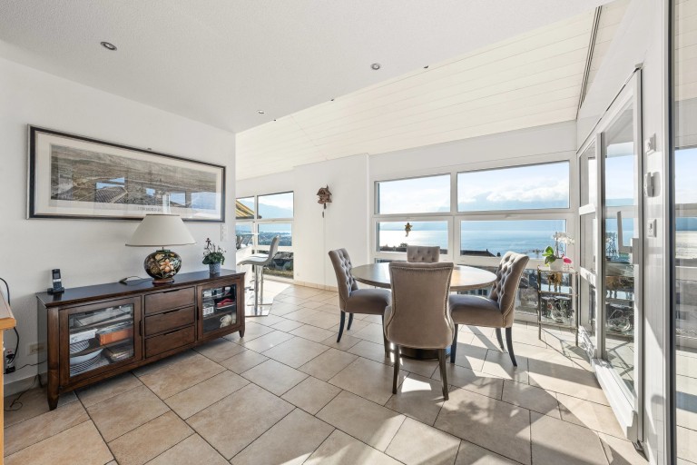 Le panorama à couper le souffle vous séduira depuis chaque pièce de ce spacieux logement de standing de 325 m², doté d’une grande et lumineuse pièce à vivre agrémentée d’un poêle, d’un agréable coin à manger avec accès au vaste balcon couvert de 18 m², et d’une cuisine semi-ouverte entièrement équipée. Des toilettes visiteurs, une chambre ou salle à manger avec salle de bains, et une buanderie, donnant sur un agréable balcon couvert de plus de 14 m² complètent ce niveau.