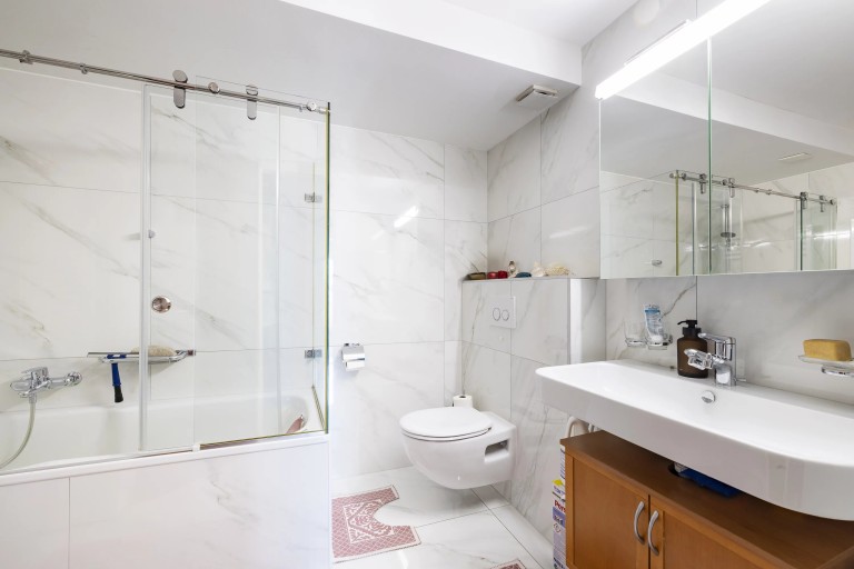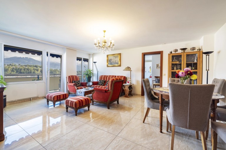 Entièrement rénové en 2015, il offre des espaces lumineux et bien agencés, comprenant 4 chambres à coucher et deux salles de bains (1x douche et 1x baignoire avec colonne de lavage). Un grand balcon de 30m2 constitue un véritable atout pour profiter de l’extérieur et de la vue dégagée sur le lac et les montagnes.