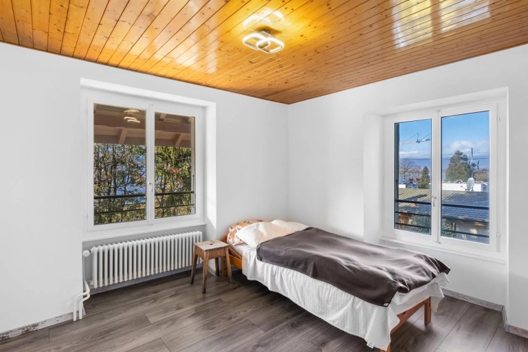 Quatre chambres à coucher, dont deux offrent une échappée sur le lac, une salle de bains avec toilettes et dégagement.