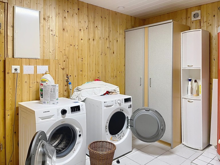 Pour parfaire l’ensemble, le chalet dispose encore d’un second atelier ainsi que d’une buanderie commune, apportant un confort supplémentaire au quotidien.