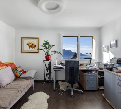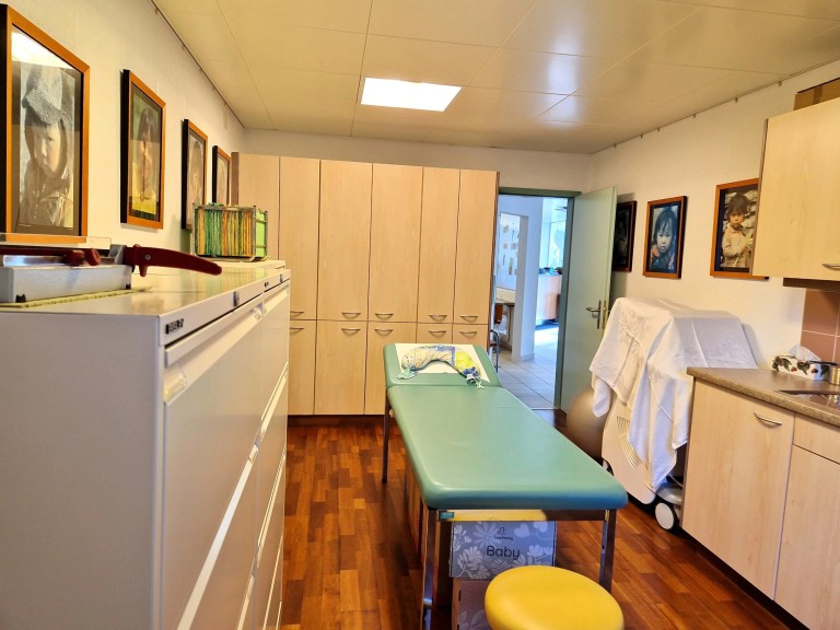 Le cabinet médical situé au rez-inférieur (côté Ch. des Dents-du-Midi) jouit d’une entrée indépendante. Il se compose d’un hall avec réception et secrétariat, d’une salle d’attente, d’un bureau-salle de consultation, d’une salle de repos, d’un petit laboratoire, d’un WC séparés et d’une grand bureau à l’arrière avec un accès sur l’extérieur et également à la partie habitation et d’un garage box.