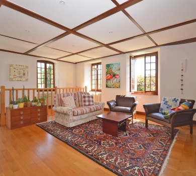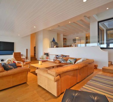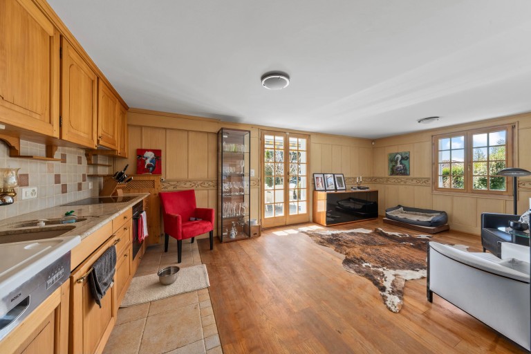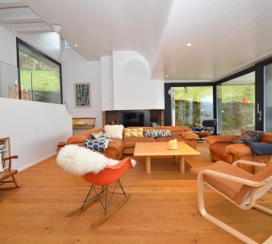 Au rez supérieur, vous trouverez une lumineuse pièce à vivre agrémentée d’une cheminée, une salle à manger et une cuisine entièrement équipée. L’ensemble de ces pièces donne accès à un grand balcon où vous pourrez profiter d’une vue panoramique sur le Bassin Lémanique. Un petit salon et un WC visiteurs complètent ce niveau.