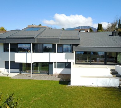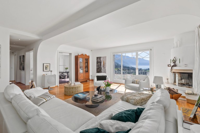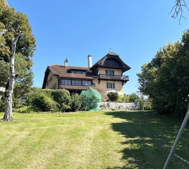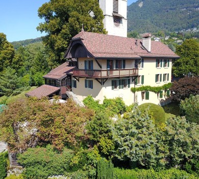 Située dans un quartier résidentiel paisible et verdoyant, à deux pas du coeur du village, cette magnifique propriété vous séduira grâce à l’exceptionnelle vue panoramique dont elle bénéficie sur le lac et les montagnes.