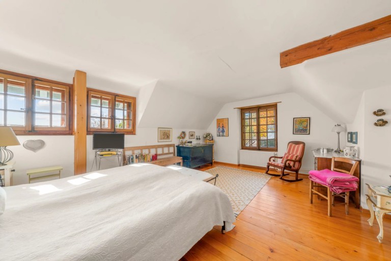 Implantée sur une magnifique parcelle de plus de 2’000 m², cette propriété de charme séduit par son cadre verdoyant et son atmosphère authentique. Elle se compose d’une maison principale de 5 à 6 pièces offrant environ 150 m² habitables, ainsi que d’une annexe comprenant un appartement de 2 pièces en duplex, idéal pour accueillir famille, invités ou pour un usage indépendant.