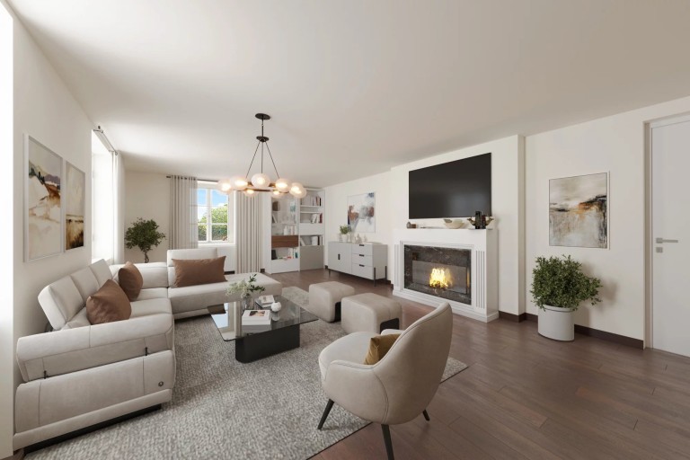 En complément, une annexe attenante à la maison abrite un appartement de 4pièces d’environ 120 m². Cet espace indépendant comprend une cuisine équipée, une salle à manger conviviale, un living avec cheminée ainsi que deux chambres, idéal pour un usage locatif ou pour recevoir famille et amis en toute indépendance.